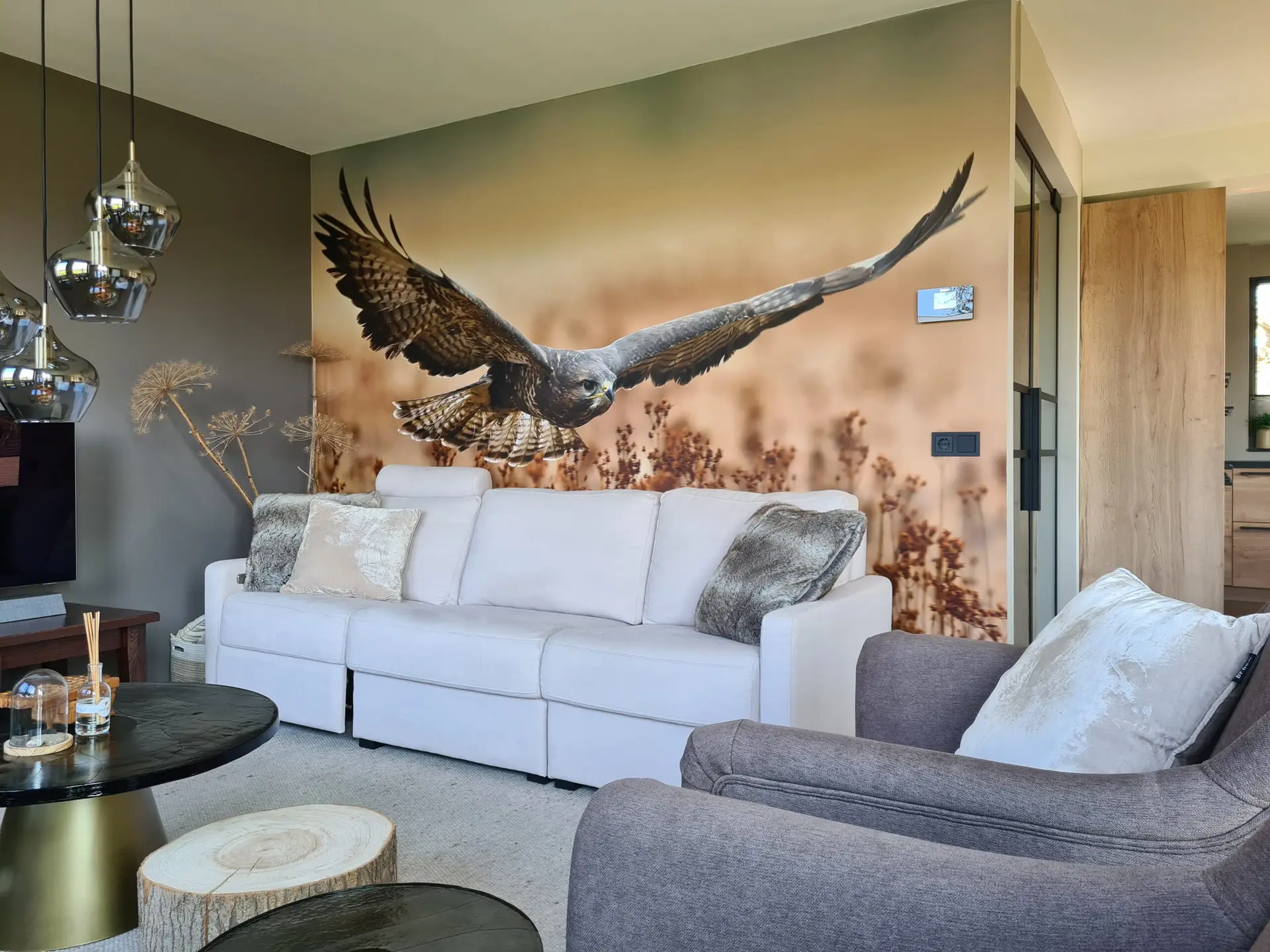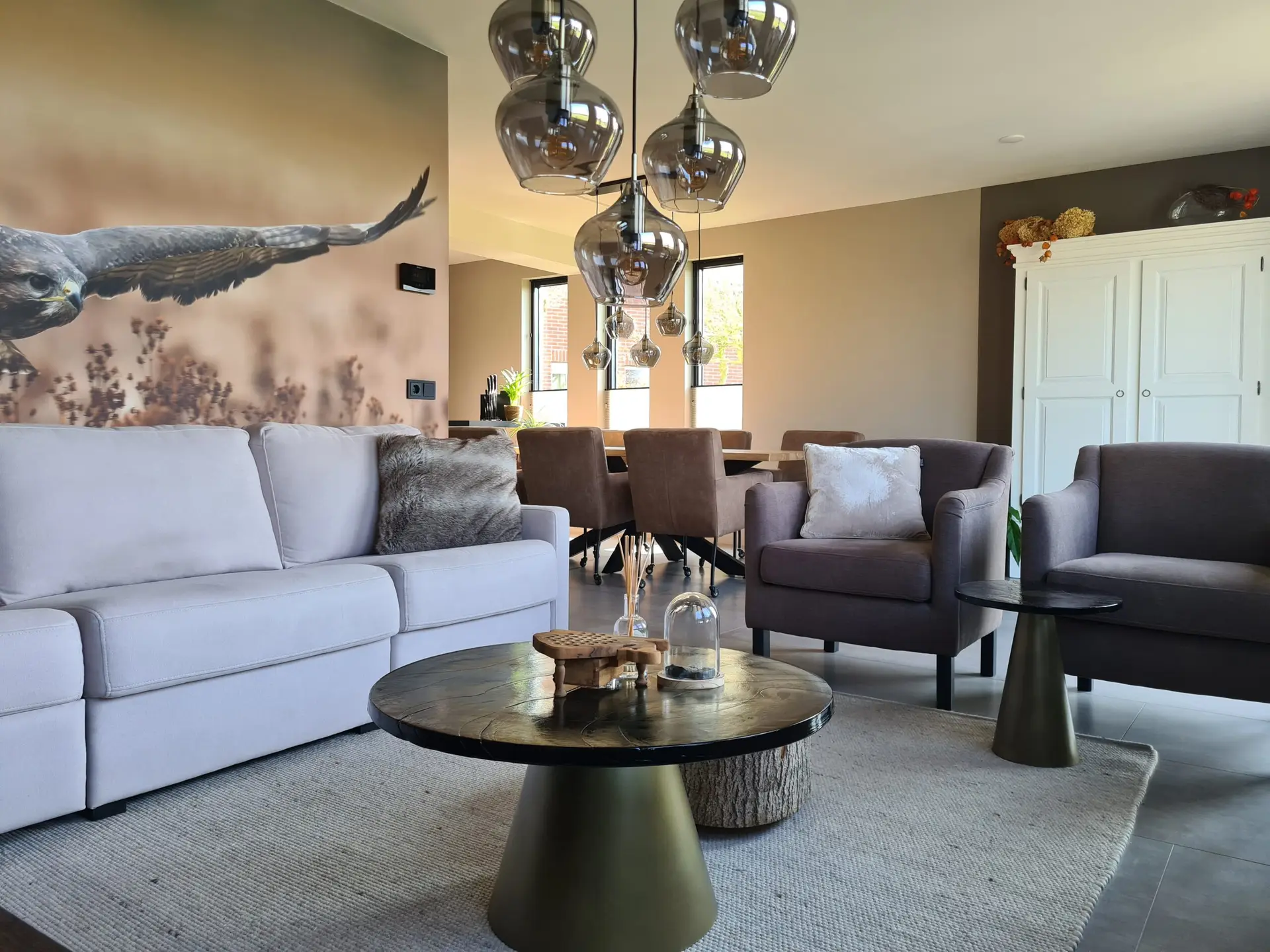 Eiken keuken met keukeneiland met zichtlijn naar woonkamer